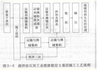 路拌法石灰工业废渣稳定土基层施工工艺流程: