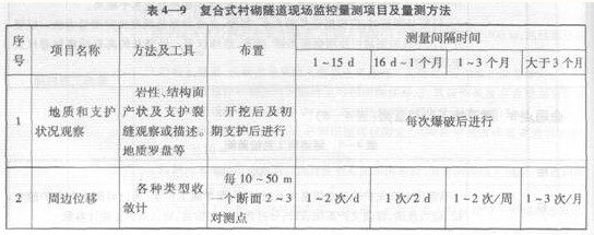 复合式衬砌隧道现场监控量测项目及量测方法: