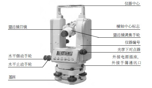 经纬仪的结构(主要常用部件): 望远镜制动螺旋、望远镜 、望远镜微动螺旋 、水平制动、水平微动螺旋 、脚螺旋、光学瞄准器、 物镜调焦 、目镜调焦 、度盘读数显微镜调焦、 竖盘指标管水准器微动螺旋 、光学对中器、基座圆水准器 、仪器基座 、竖直度盘 、垂直度盘照明镜、照准部管水准器、水平度盘位置变换手轮。
