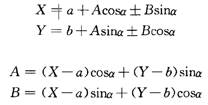 (4)当施工控制网与测量控制网发生联系时,应进行坐标换算,以便统一坐标系;如图1K416022-1所示,两坐标系的旋向相同,设A为施工坐标系(AO'B)的纵轴OA在测量坐标系(XOY)内的方位角,坐标系原点O'在测量系内的坐标值,则P点在两坐标系统内的坐标X ,Y 和A ,B 的关系式为: