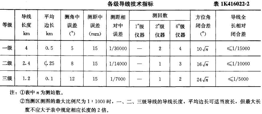 3)各级导线的总长和边长应符合表1K416022-2的有关规定。