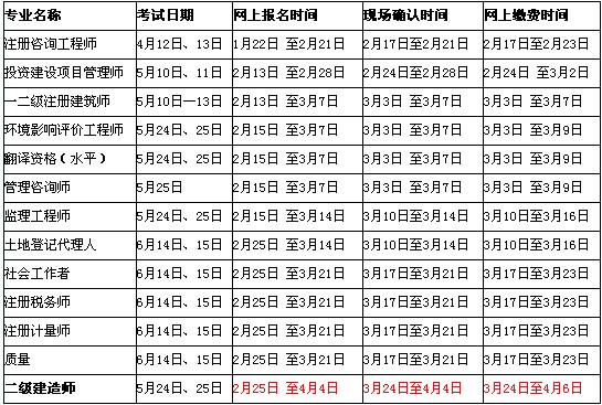 我区2014年一二级注册建筑师、监理工程师和二级建造师等13个专业技术资格考试报名工作安排如下: