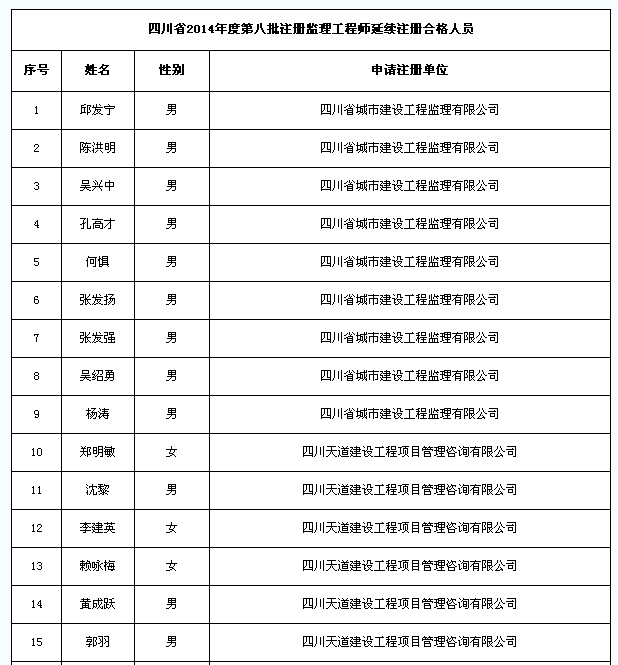 附件:四川省2014年度第八批注册监理工程师延续注册合格人员