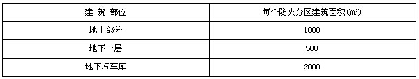 根据《高层民用建筑设计防火规范》和《汽车库、修车库、停车场设计防火规范》的规定,该住宅建筑内应采用防火墙等划分防火分区,每个防火分区允许最大建筑面积,不应超过下表规定。