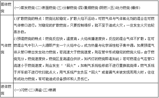 问题:固体、气体、液体燃烧各自有哪些类型和特点?