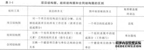 组织结构图和合同结构图的区别项目结构图、组织结构图和合同结构图的区别见表1—1。