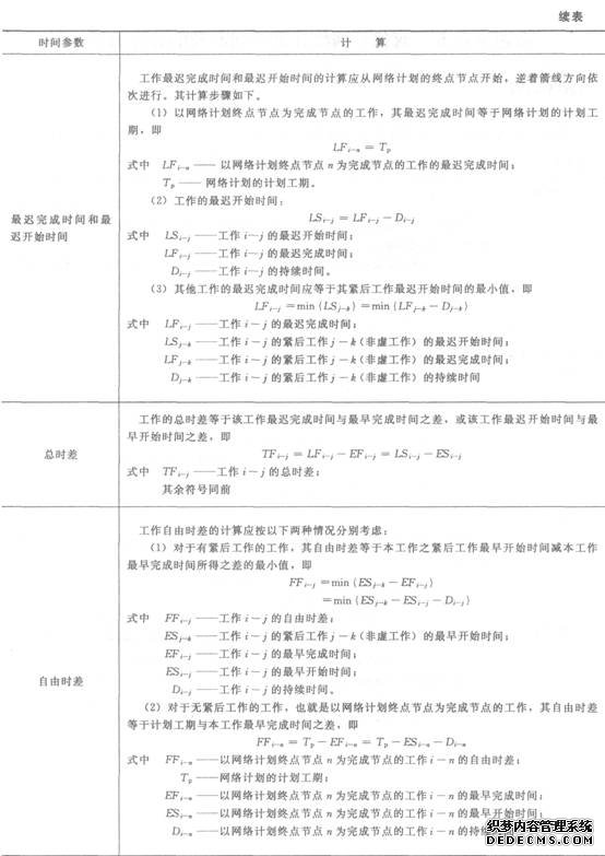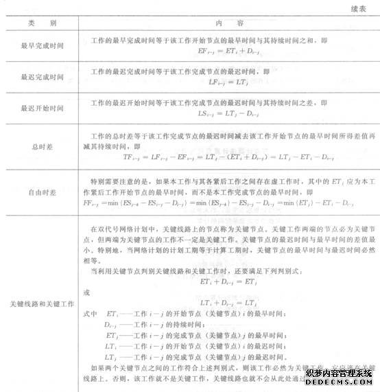 六时标注法计算双代号网络计划时问参数见表3—4。