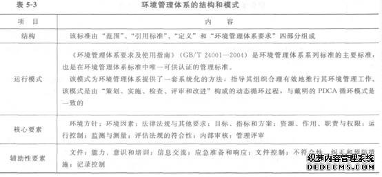 环境管理体系的结构和模式见表5-3。
