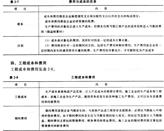 费用和成本是两个并行使用的概算,二者之间既有联系也有区别,见表2-7。