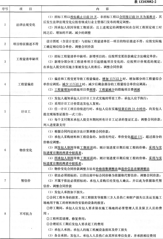 1Z103082合同价款调整