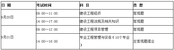 2.考试科目:《专业工程管理与实务》科目包括公路工程、铁路工程、民航机场工程、港口与航道工程、水利水电工程、市政公用工程、通信与光电工程、建筑工程、矿业工程、机电工程共10个专业。