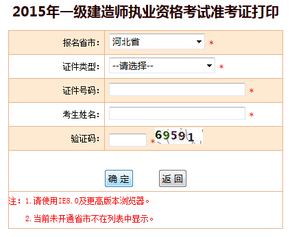 2015年河北一级建造师准考证打印入口于9月11日至9月17日开通!报考人员可登录网站报名系统自行打印准考证。凡未在规定时间内打印准考证的,视为主动放弃参加考试。