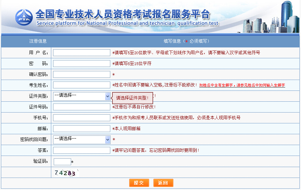 3.务必保证姓名、身份证号、报考级别、报考专业及科目信息准确。